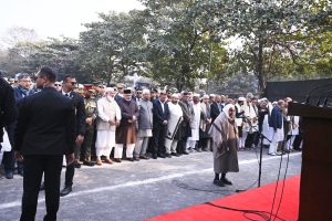 আরও উপস্থিত ছিলেন প্রধান উপদেষ্টা ড. মুহাম্মদ ইউনূস, সরকারের বিভিন্ন মন্ত্রণালয়ের উপদেষ্টা, প্রধান বিচারপতি, তিন বাহিনীর প্রধান, জামায়াতে ইসলামীর আমির ডা. শফিকুর রহমান, সেক্রেটারি জেনারেল মিয়া গোলাম পরওয়ার, জাতীয় নাগরিক পার্টির আহ্বায়ক নাহিদ ইসলামসহ বিভিন্ন রাজনৈতিক দলের নেতারা। দেশের ইতিহাসে এটাই সর্ববৃহৎ জানাজা বলে ধারণা করা হচ্ছে।