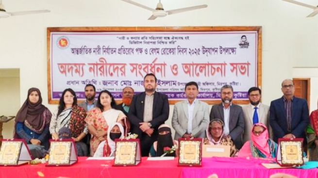 কুষ্টিয়ার মিরপুরে আন্তর্জাতিক নারী নির্যাতন প্রতিরোধ পক্ষ ও বেগম রোকেয়া দিবস উপলক্ষে ৫ অদম্য নারীকে সংবর্ধনা প্রদান ও আলোচনা সভা অনুষ্ঠিত হয়। এ উপলক্ষে মঙ্গলবার (৯ ডিসেম্বর) সকালে  উপজেলা প্রশাসন