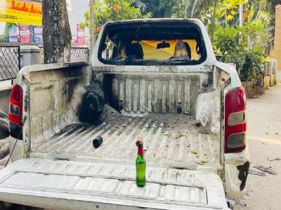গোপালগঞ্জে গণপূর্ত বিভাগ ও গ্রামীণ ব্যাংকের একটি শাখায় পেট্রোল বোমা নিক্ষেপের ঘটনা ঘটেছে। বৃহস্পতিবার (১৩ নভেম্বর) ভোরে দুর্বৃত্তদের নিক্ষেপ করা পেট্রোল বোমায় আগুন লেগে পুড়ে গেছে গণপূর্ত বিভাগের একটি পিক-আপভ্যান।