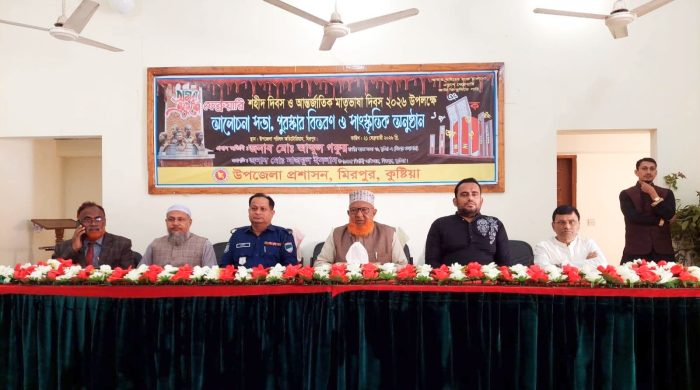 কুষ্টিয়ায় মিরপুরে ২১ফেব্রুয়ারি মহান শহিদ দিবস ও আন্তর্জাতিক মাতৃভাষা দিবস উদযাপন উপলক্ষ্যে প্রস্তুতিমূলক সভা অনুষ্ঠিত হয়েছে। বৃহস্পতিবার (১৯ ফেব্রুয়ারি) সকাল দশটায় উপজেলা পরিষদ হলরুমে এ সভার আয়োজন করা হয়।