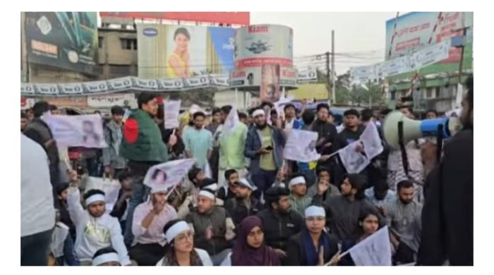 কুষ্টিয়ায় ইনকিলাব মঞ্চের নেতা জাবেরকে আহত ও হাদি হত্যার বিচারের দাবিতে সড়ক অবরোধ করে বিক্ষোভ করছে ইনকিলাব মঞ্চ ও বৈষম্য বিরোধী ছাত্র জনতা। শুক্রবার (৬ ফেব্রুয়ারী) বিকেল সাড়ে ৫টা থেকে