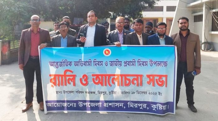 কুষ্টিয়ার মিরপুরে আন্তর্জাতিক অভিবাসী দিবস ও জাতীয় প্রবাসী দিবস পালিত হয়েছে। এ উপলক্ষে (১৮ ডিসেম্বর) সকালে উপজেলা প্রশাসনের উদ্যোগে এক বর্নাঢ্য র্যালি বের হয়ে শহরের প্রধান প্রধান সড়ক প্রদক্ষিণ করেন।